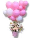 Arrangement mix of pink flowers with pink balloon 40*40 cm