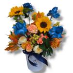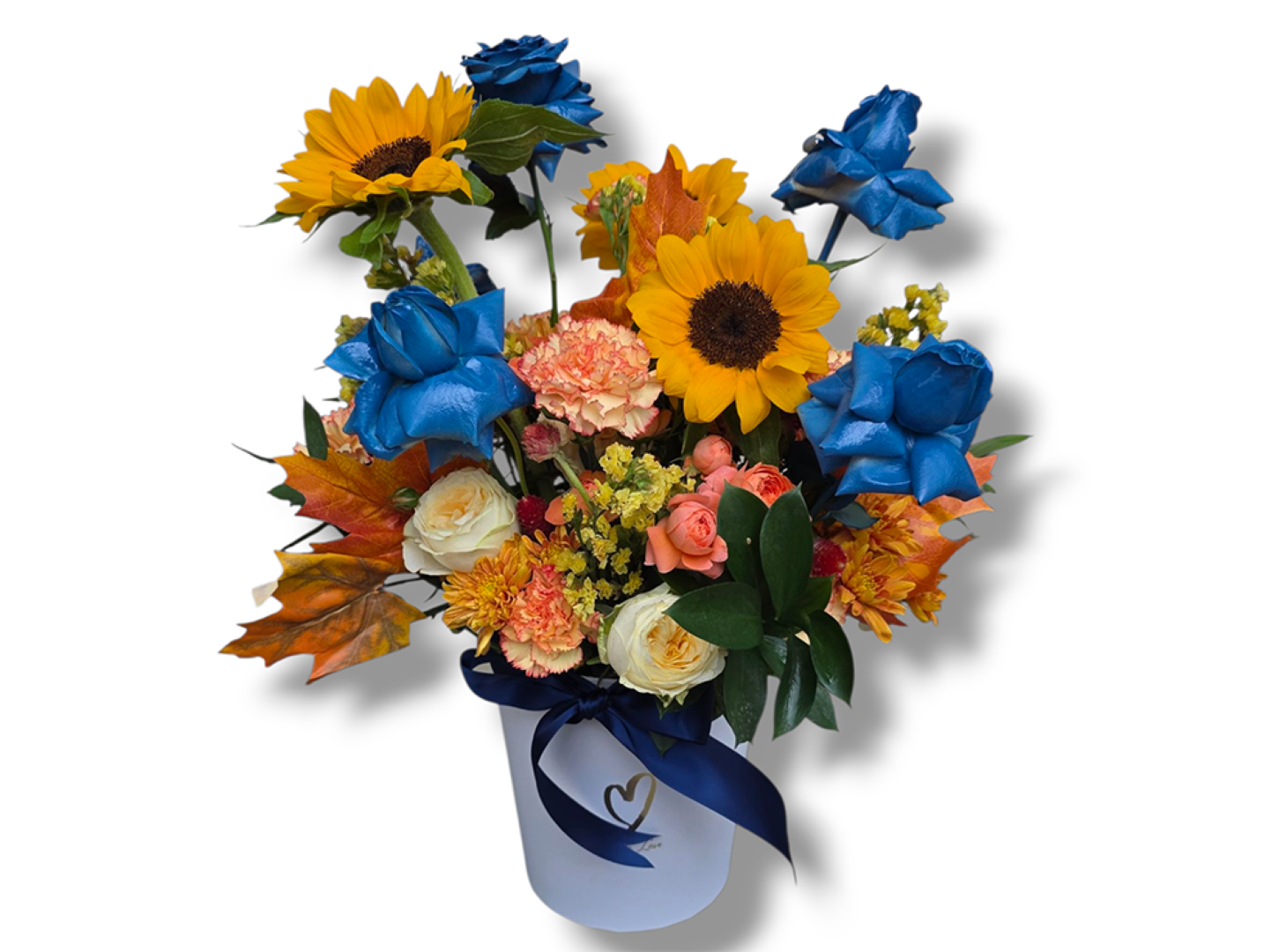 Mixed flowers arrangement fall colors in a box 25*30 cm