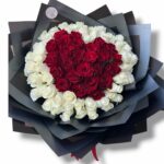 Red & White Roses Bouquet In a Black Wrapping 40*40 cm