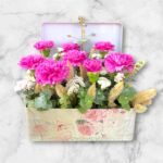 Flower box With pink and white flowers Mix with Big Balloon 40*50 cm