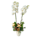 One Orchid Plant in a Ceramic Pot with Christmas Ornaments 25*50 cm