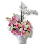 Stylish Flower Pot With pink and white flowers and Balloon 40*30 cm
