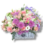 Arrangement of a mix of flowers in a Basket 30*30cm