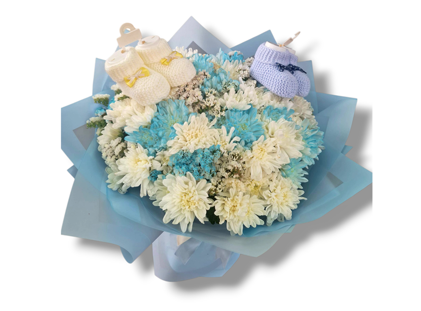Hand bouquet mix of white and blue flowers 35*35 cm